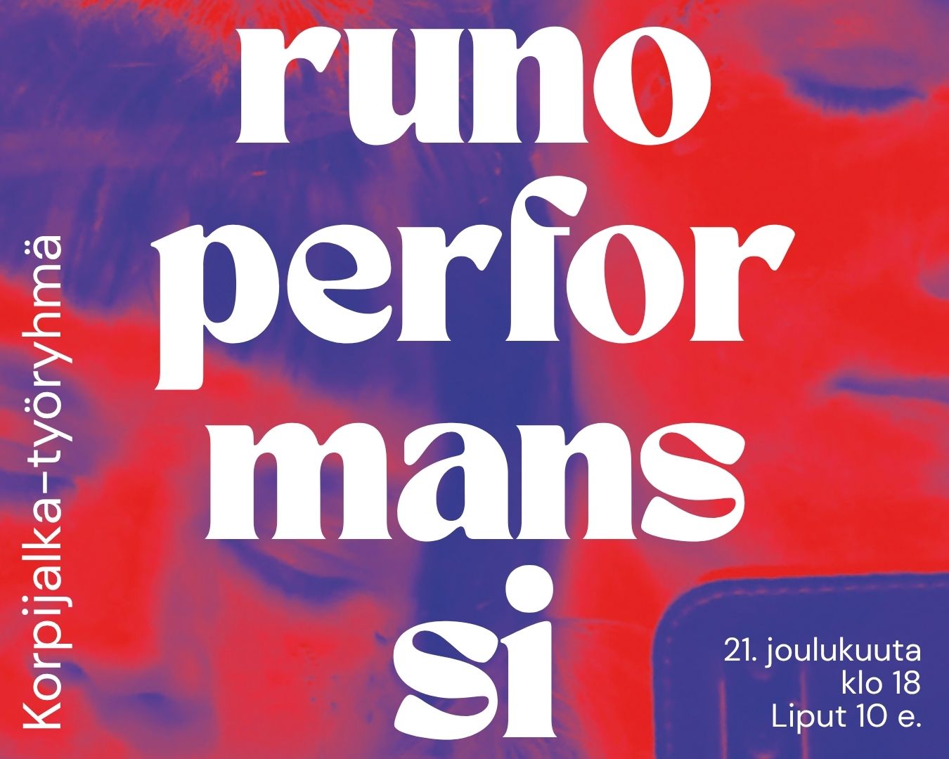 Teos koostuu Tanja Korpilahden lausutuista runoista sekä Tuulikki Jalkasen live-musiikista sekä työryhmän visuaalisista elementeistä videon muodossa. Esitykseen liput maksavat 10 e ja niitä on myynnissä ovella ennen runoperformanssin alkua klo 17.00 alkaen.